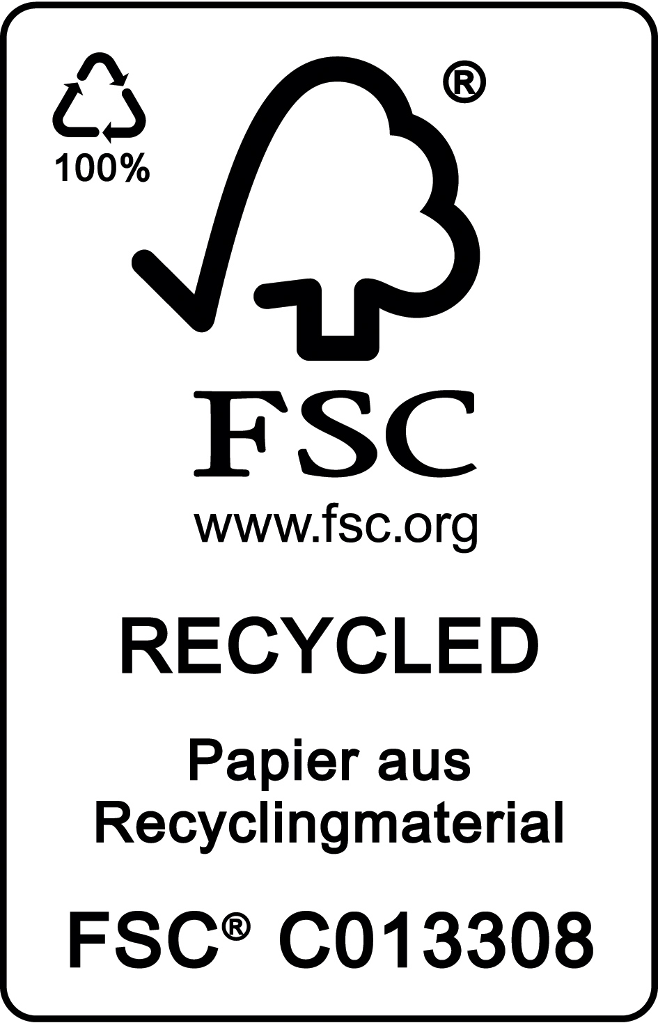 - Blauer Engel (100 Prozent Altpapier)